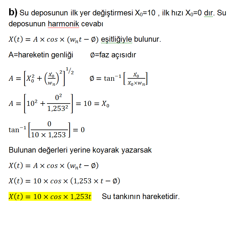 b. su tankının 10 inç boyunda bir ilk yatay yer değiştirme ile oluşan titreşim cevabını bulunuz.
