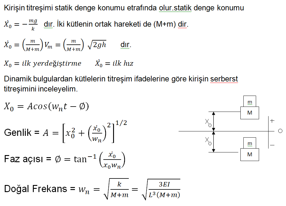 3 Şekildeki konsol Kiriş serbest ucunda bir M kütlesi taşımaktadır. bir m kütlesi h yüksekliğinden M kütlesi üstüne düşmektedir. Sekmeden ona yapışmaktadır. Kirişin Neticede oluşan enine titreşimi inceleyiniz.