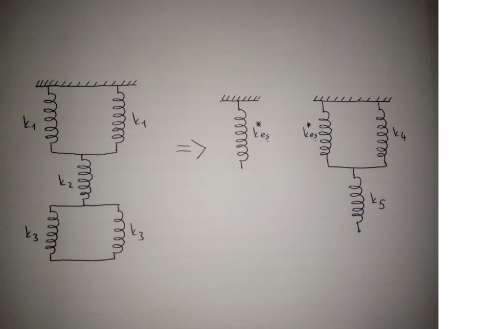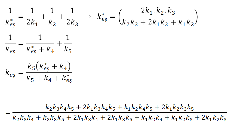 Şekilde gösterilen Seri ve paralel bağlı yayınların yerine eşdeğer yay sabiti gösteriniz.